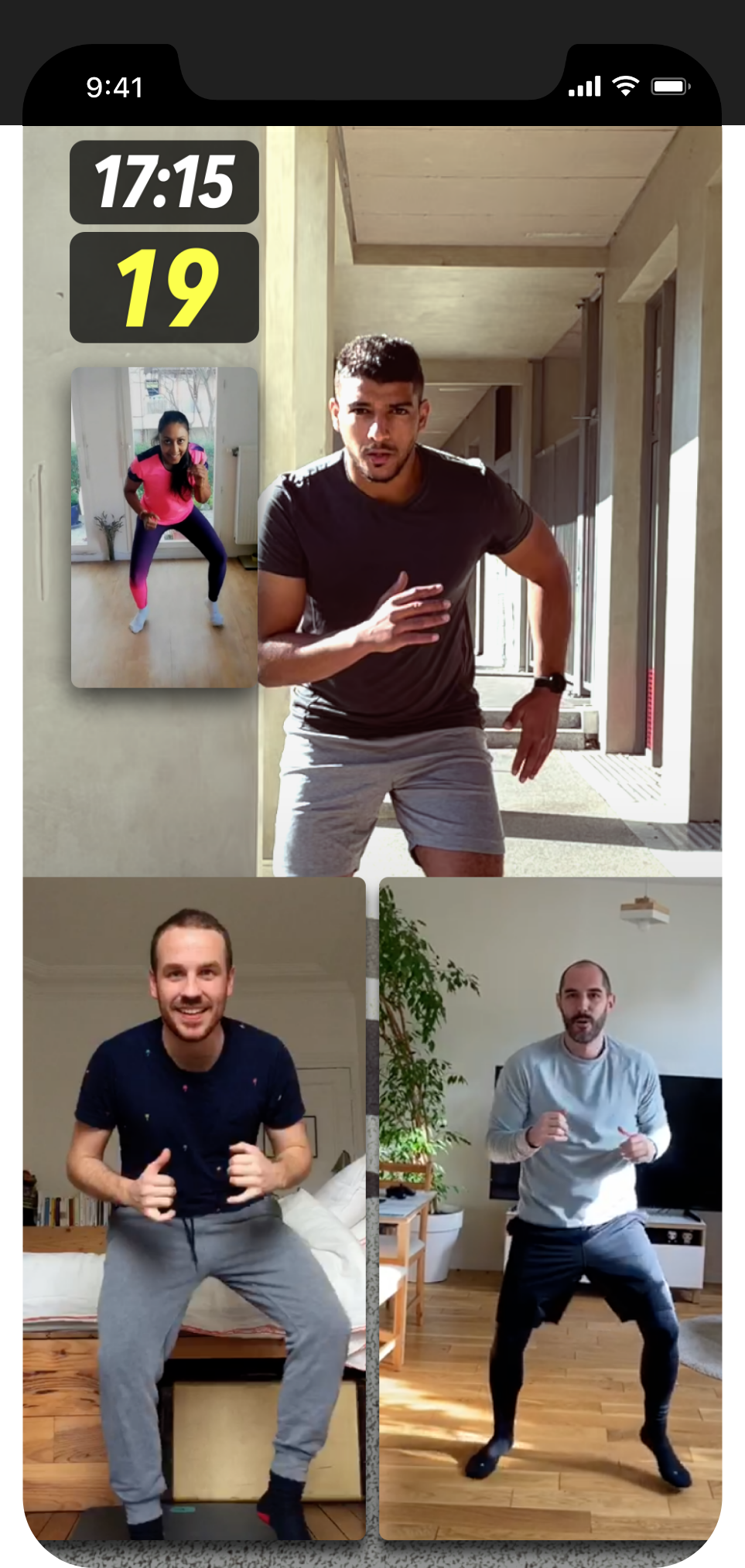 - Entraînez-vous avec vos amis en visio pour plus de motivation et de plaisir ! Ne soyez plus jamais seul face à votre écran : voyez vos partenaires, encouragez-vous et relevez des défis ensemble.